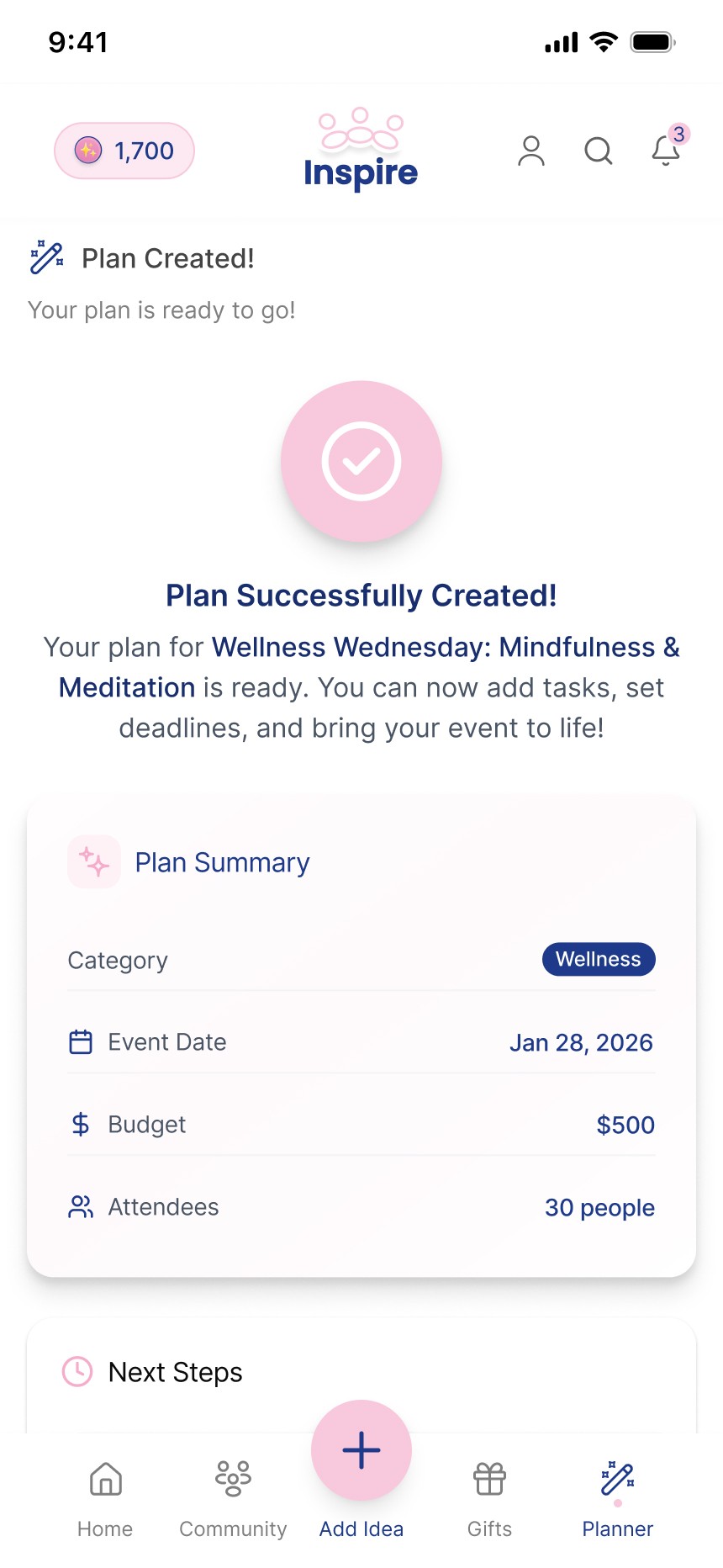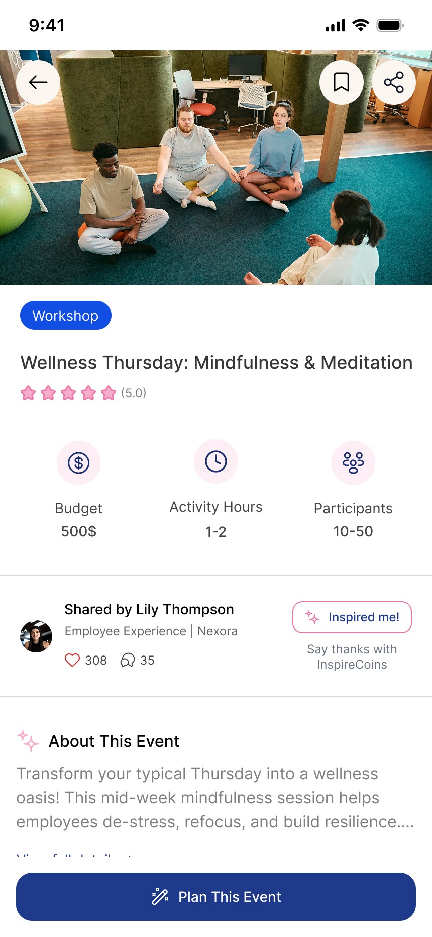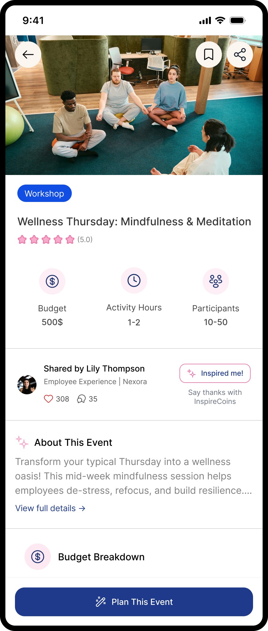 A mobile app that helps HR professionals find inspiration and turn it into clear, actionable employee initiatives. It brings structure to planning through budgets, constraints, and next steps.
