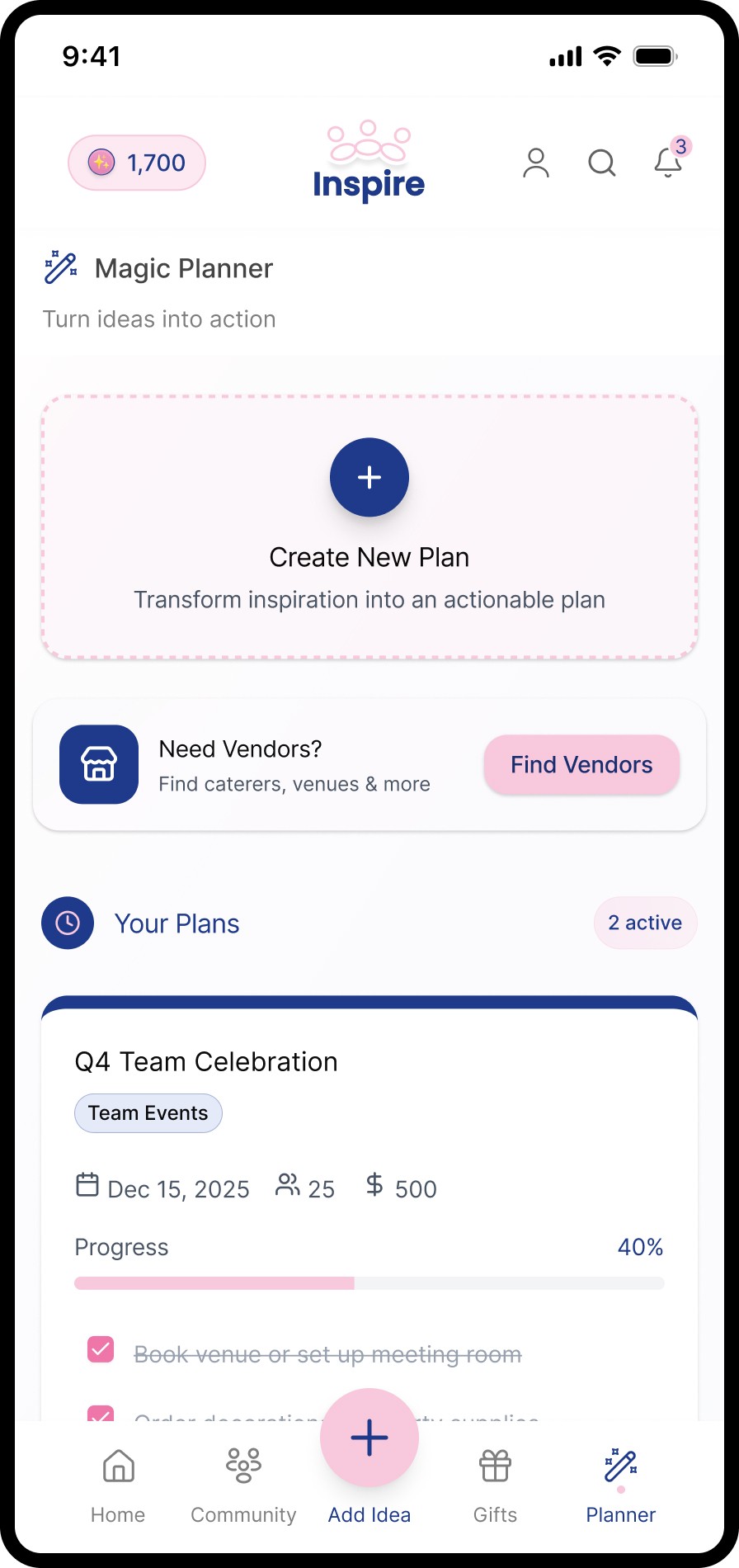 Each initiative brings key details, tasks, and vendors into one place, making ideas easy to reuse, adapt, and execute with confidence.