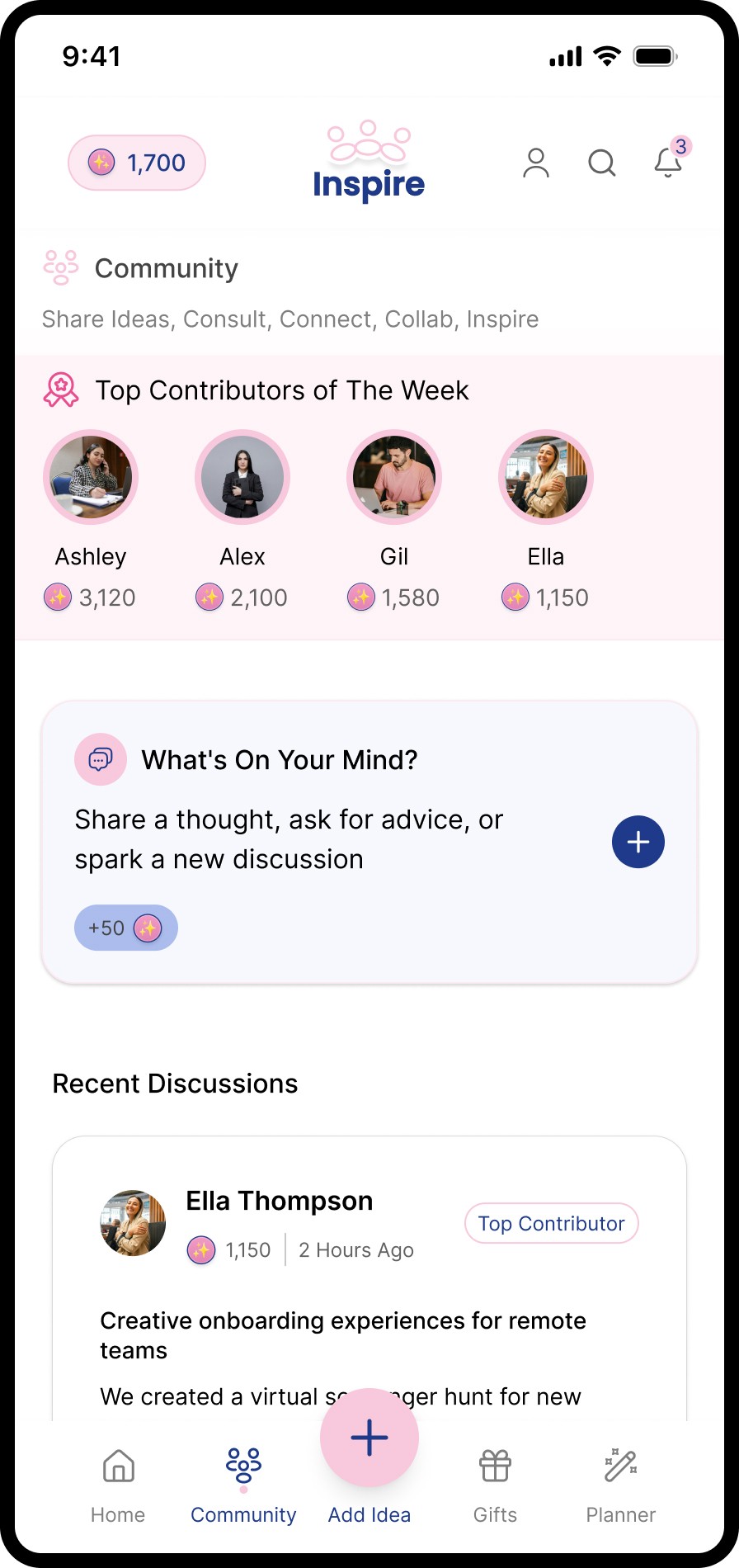 Create discussions to share ideas or get peer advice